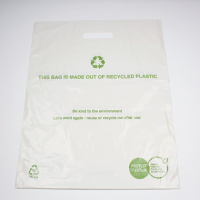 Bærepose, 45 µm, Kort side åben, LD-PE hvid, Pose med kile, 50mm bottom gusset med kile i bunden, Forstærkede håndtag æske a 500 stk, palle a 30000 stk